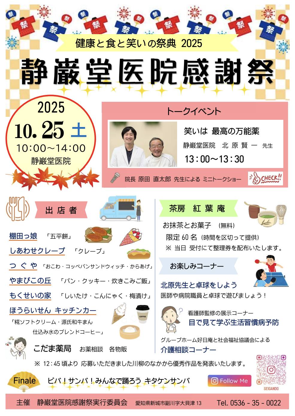 日頃より当院をご利用いただいている皆様への感謝の気持ちを込めて、「静巌堂医院感謝祭」を開催いたします。